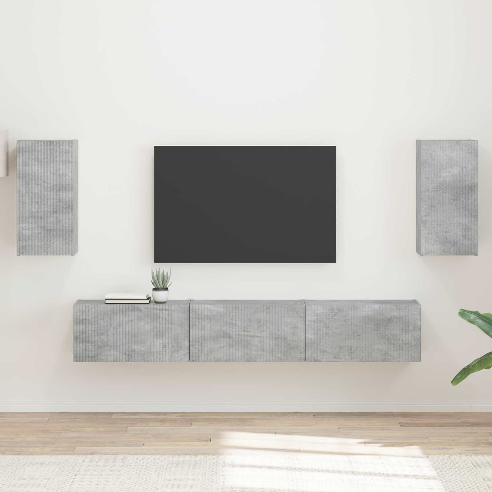 vidaXL Set comodă TV Pe perete 4 pcs Gri din beton Lemn compozit