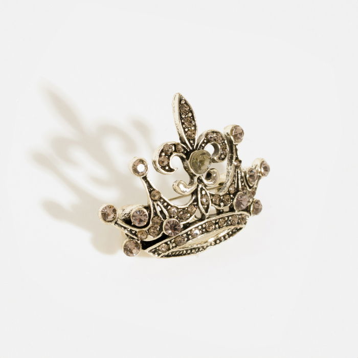 Brosa metalica argintie - coroana regala cu pietricele argintii