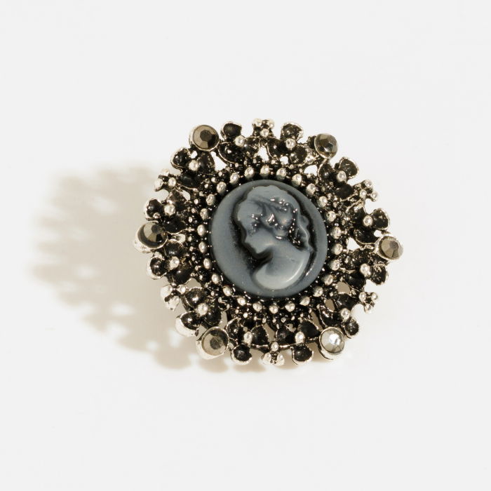 Brosa metalica argintiu antichizat - camee miniaturala cu pietricele mici argintii