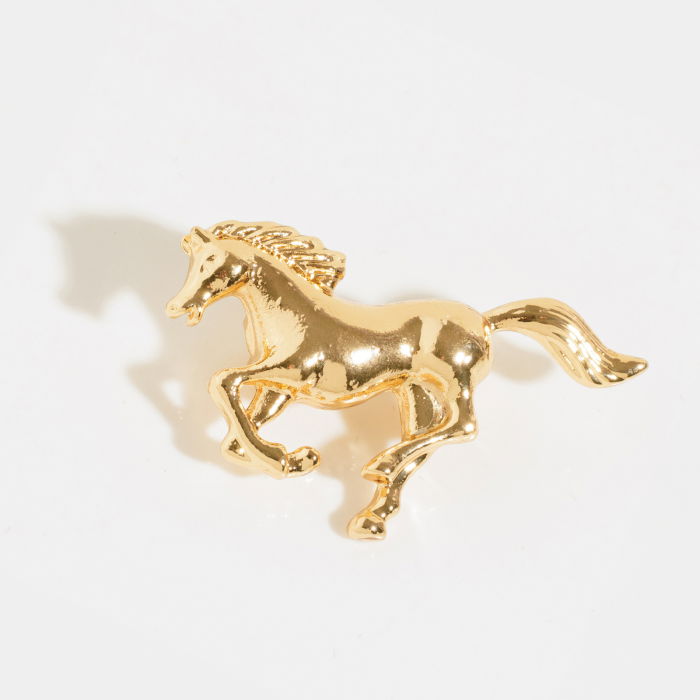 Brosa metalica aurie calut - anul Calului, ce simbolizeaza libertatea, independenta, faima si succesul