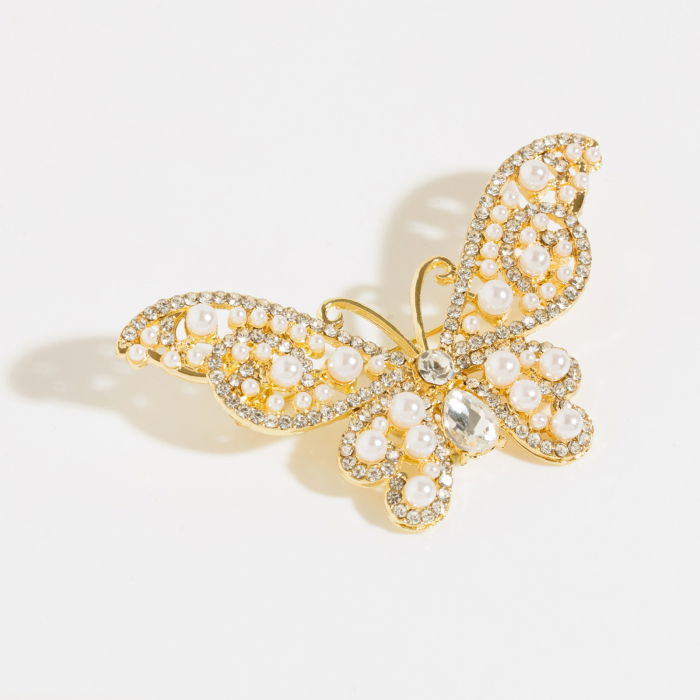 Brosa eleganta fluture din metal cu perlute artificiale si strasuri