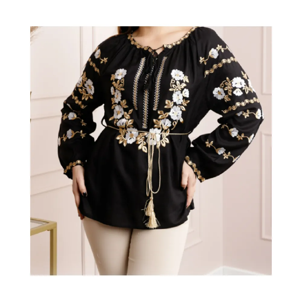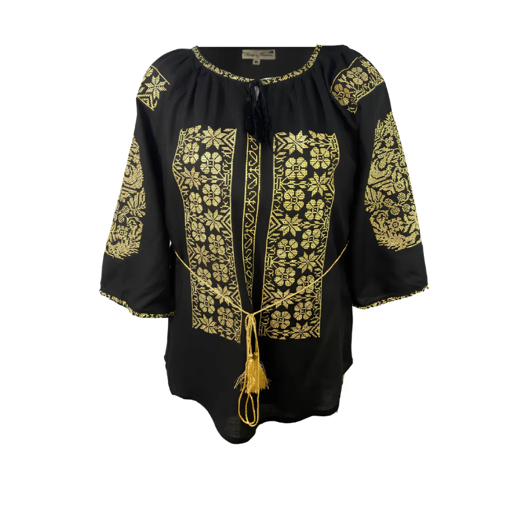 Bluza neagra cu motiv floral auriu - BMG163