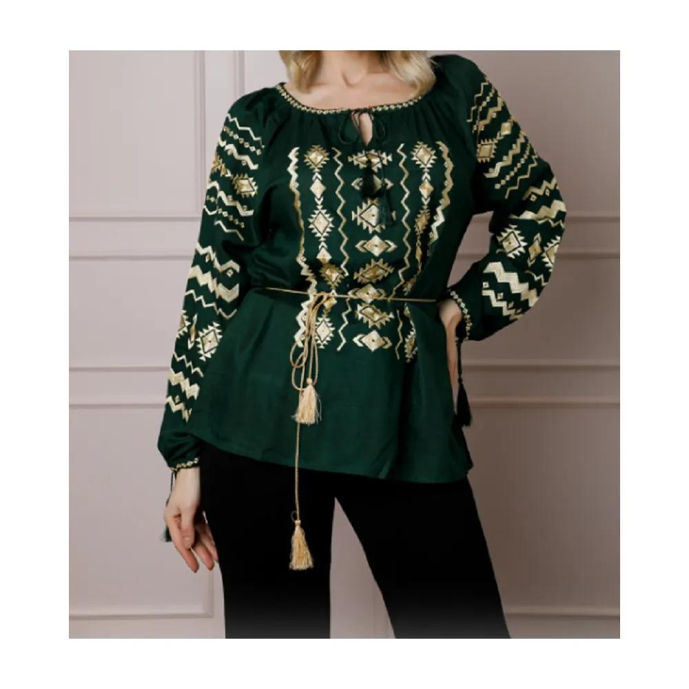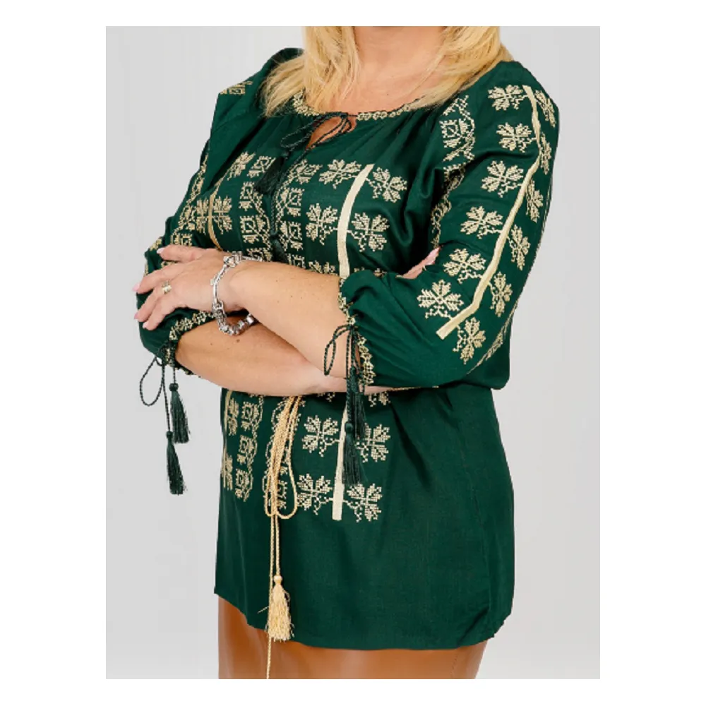 Bluza Verde cu Motiv Geometric Auriu - BMG174