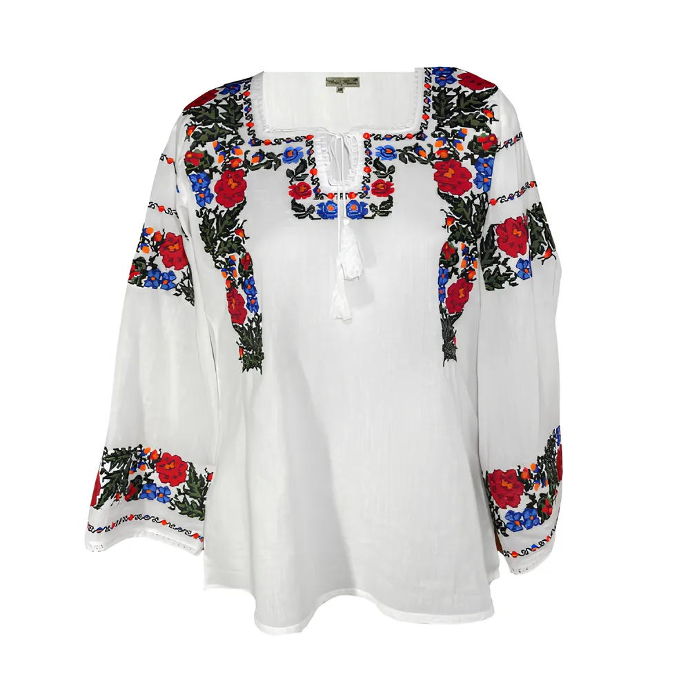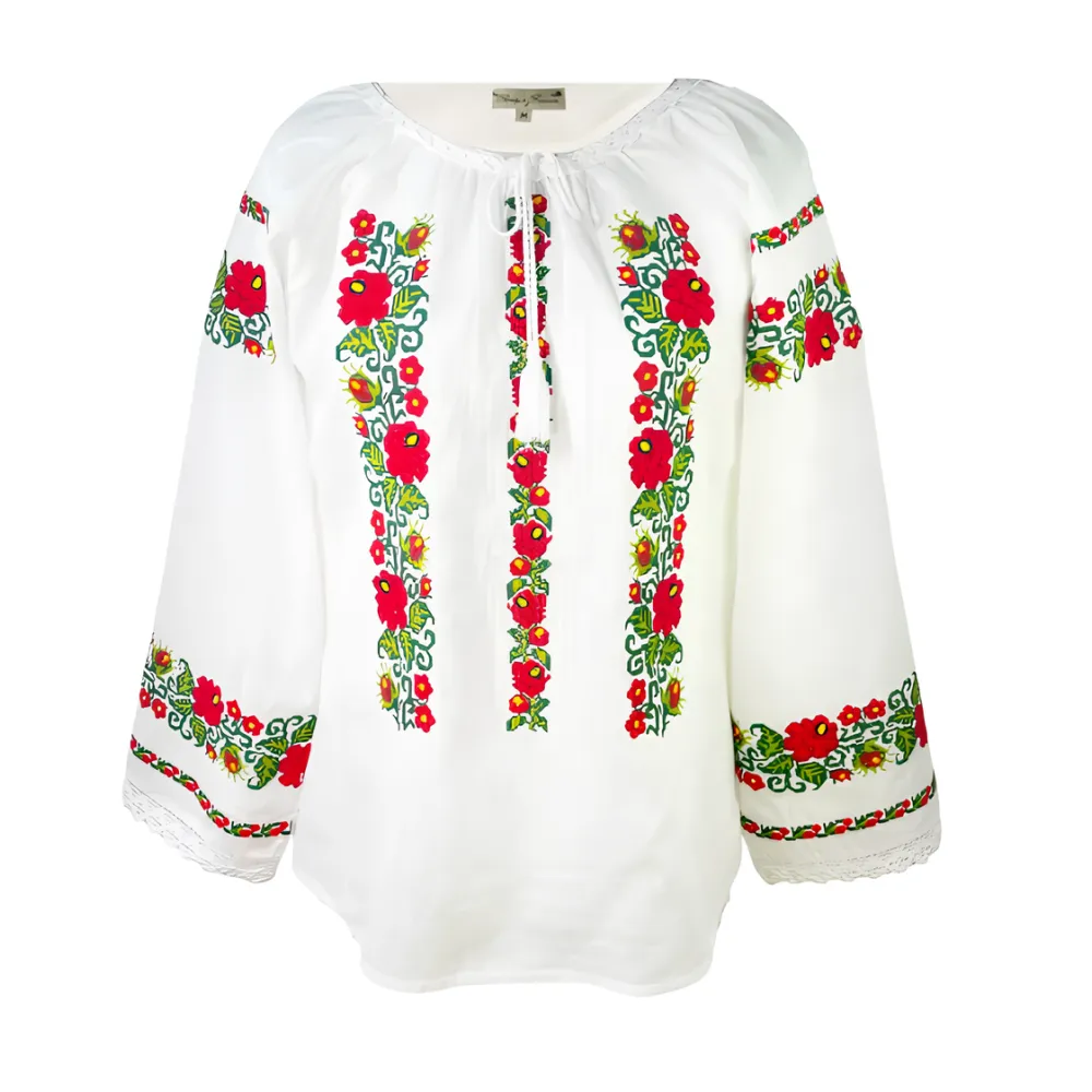 Bluza Alba cu Motiv Floral Rosu - BMG177