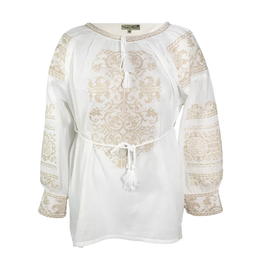 Bluza Alba cu Motiv Floral Auriu - BMG176