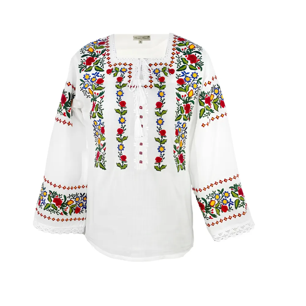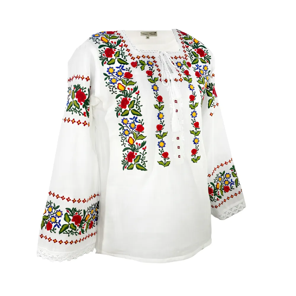 Bluza Alba cu Motiv Floral Multicolor - BMG178