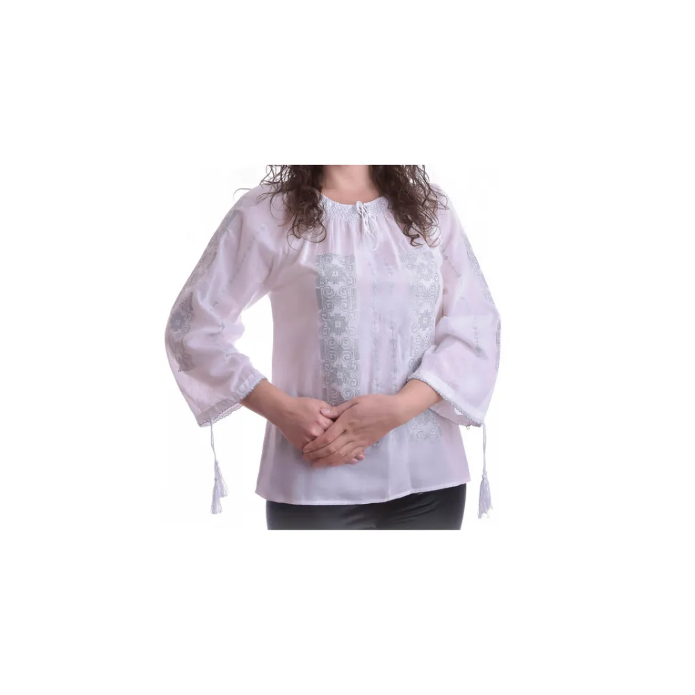 Bluza Tip Ie Alba cu Motiv Geometric Gri - BMG50