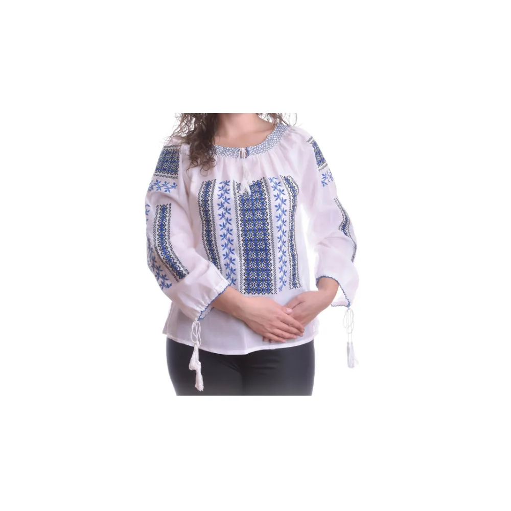 Bluza Tip Ie Alba cu Motiv Geometric Albastru - BMG55