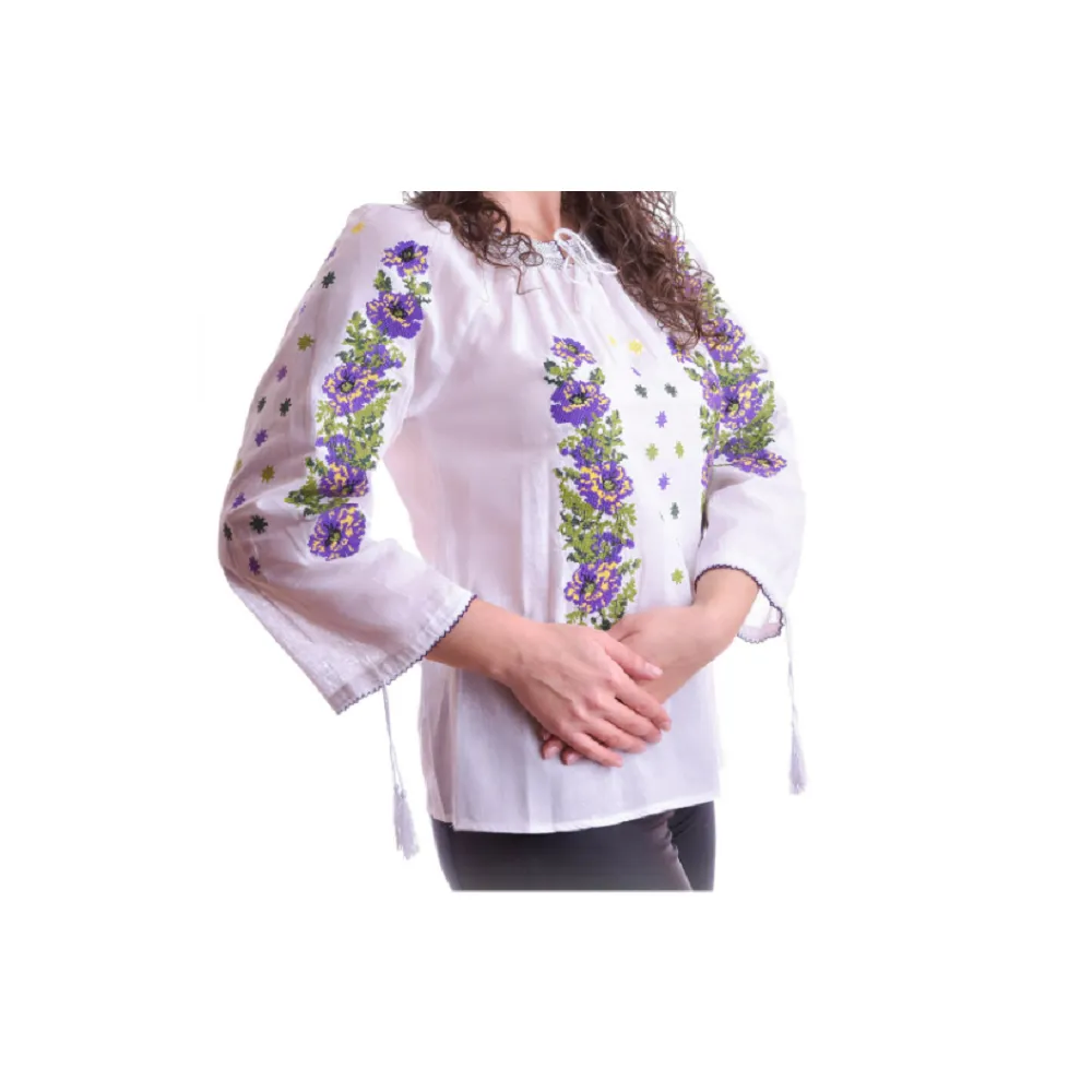 Bluza Tip Ie Alba cu Motiv Floral Mov - BMG52