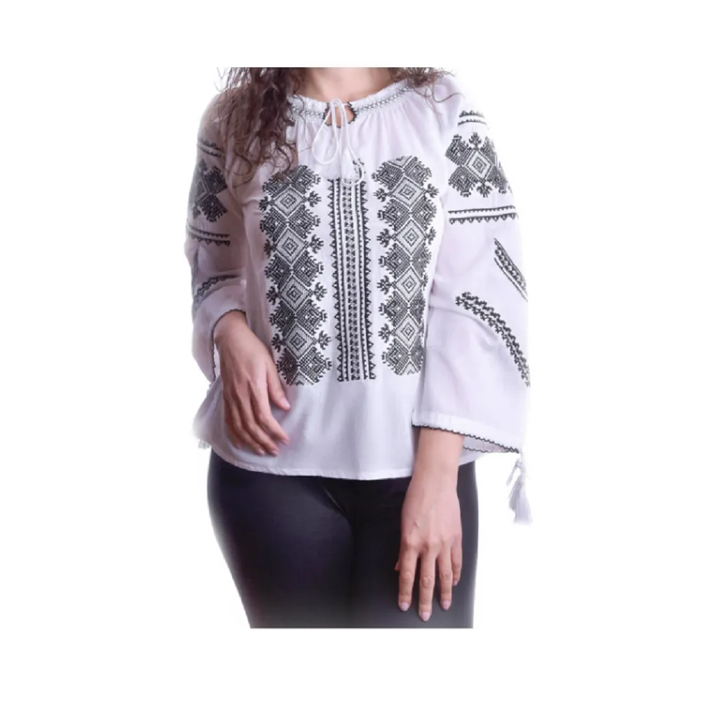 Bluza Tip Ie Alba cu Motiv Geometric Negru - BMG61