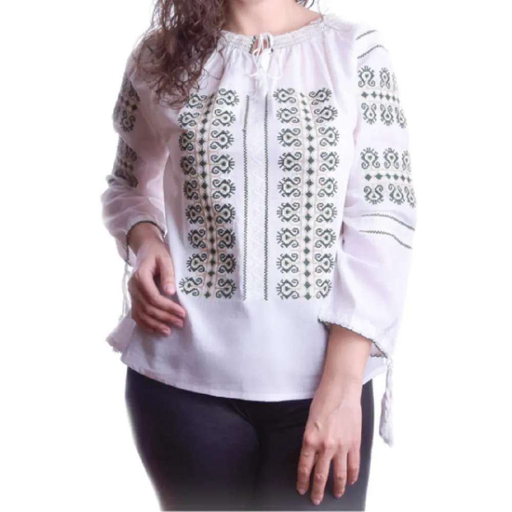 Bluza Tip Ie Alba cu Motiv Geometric Verde - BMG60