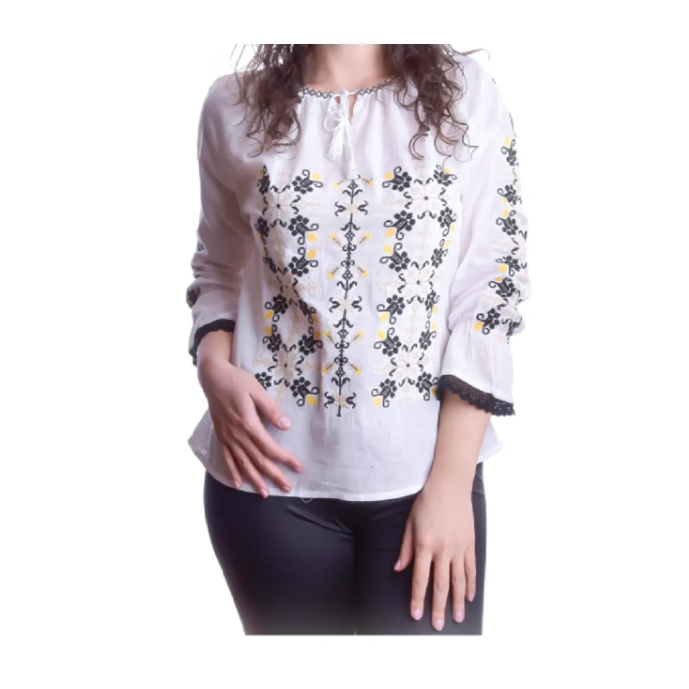 Bluza Tip Ie Alba cu Motiv Floral Galben - BMG56