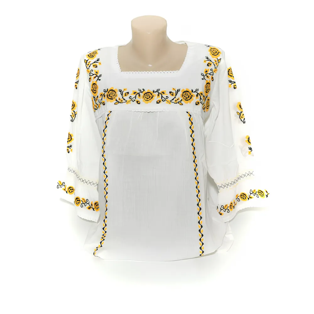 Bluza Tip Ie Alba cu Motiv Floral Galben - BMG15