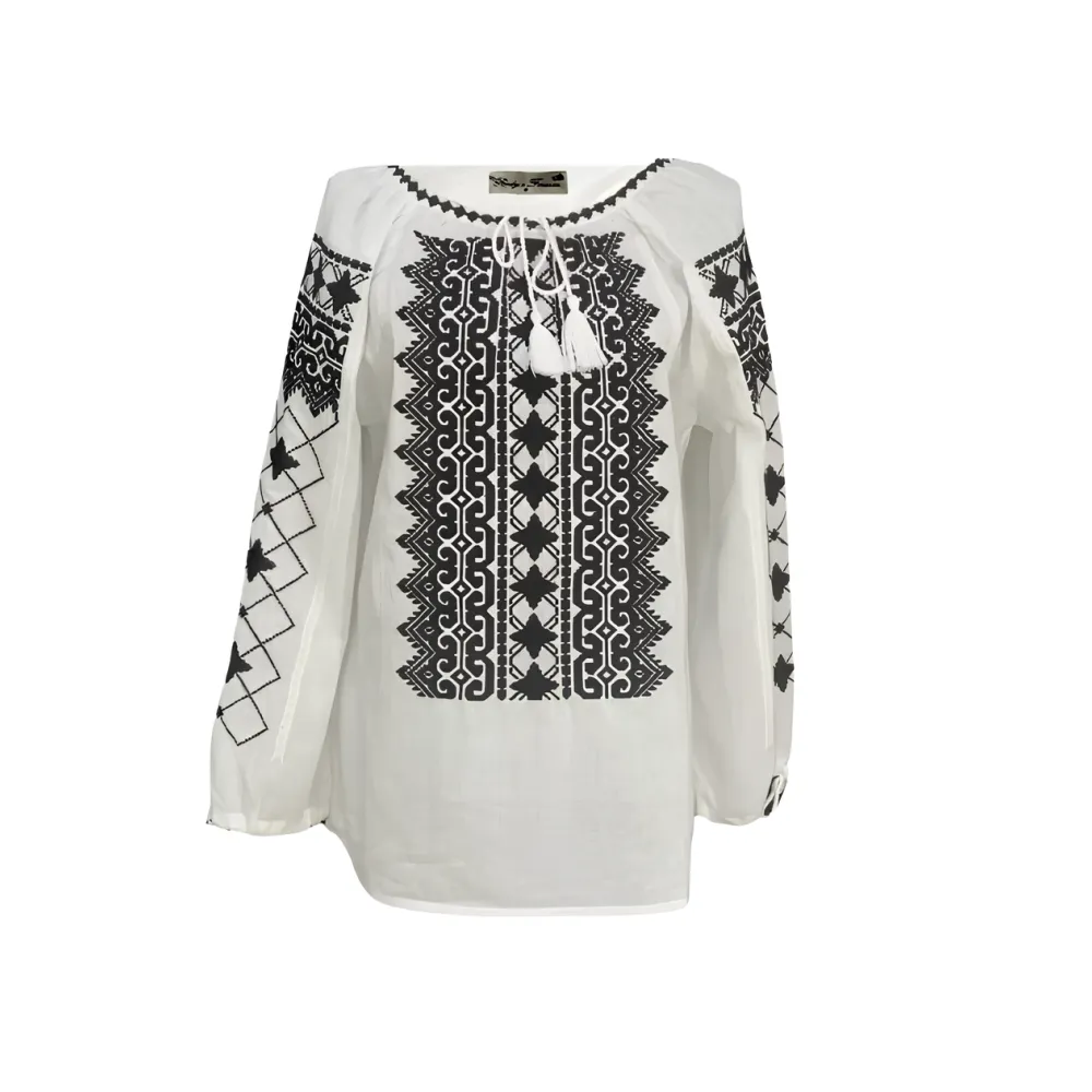 Ie Traditionala Alba cu Motiv Geometric Negru - IML10