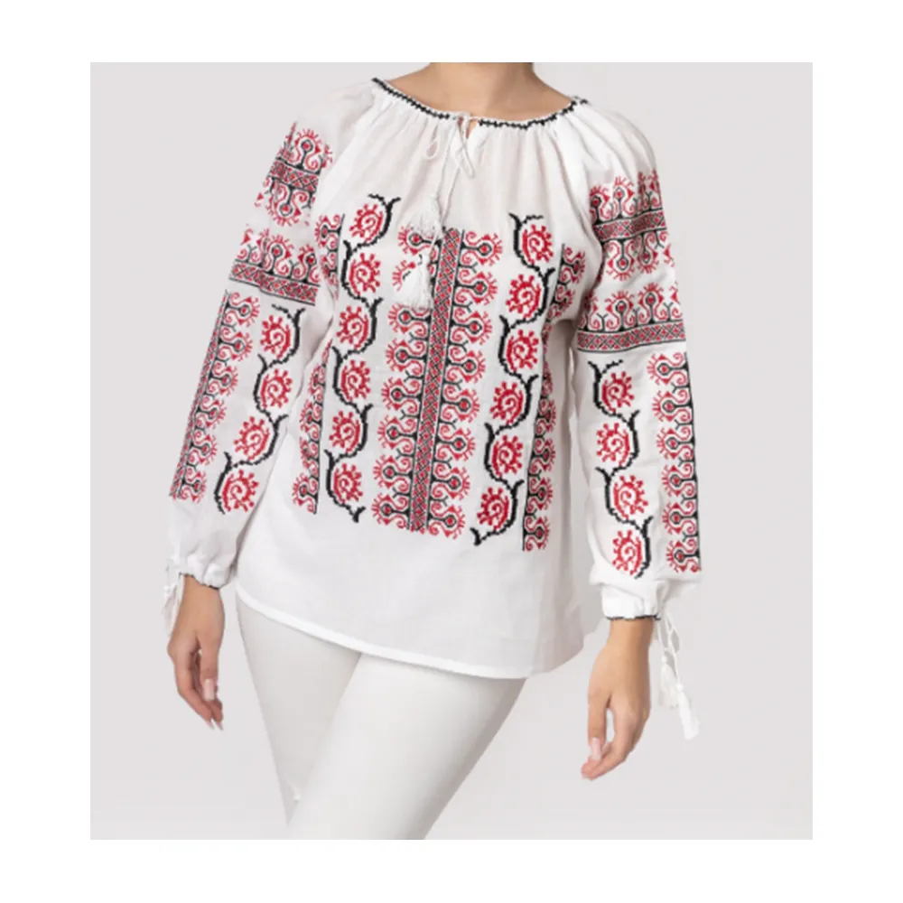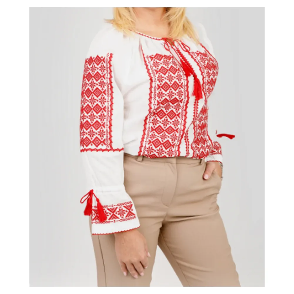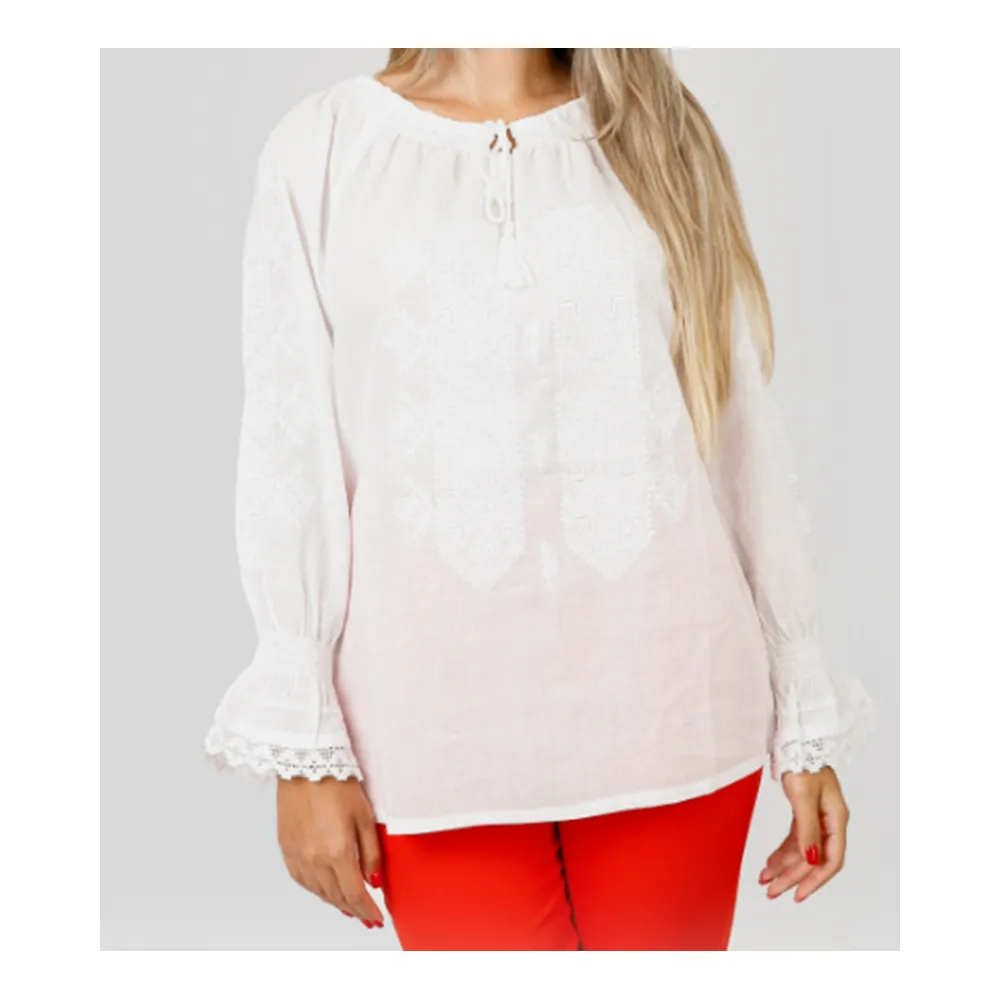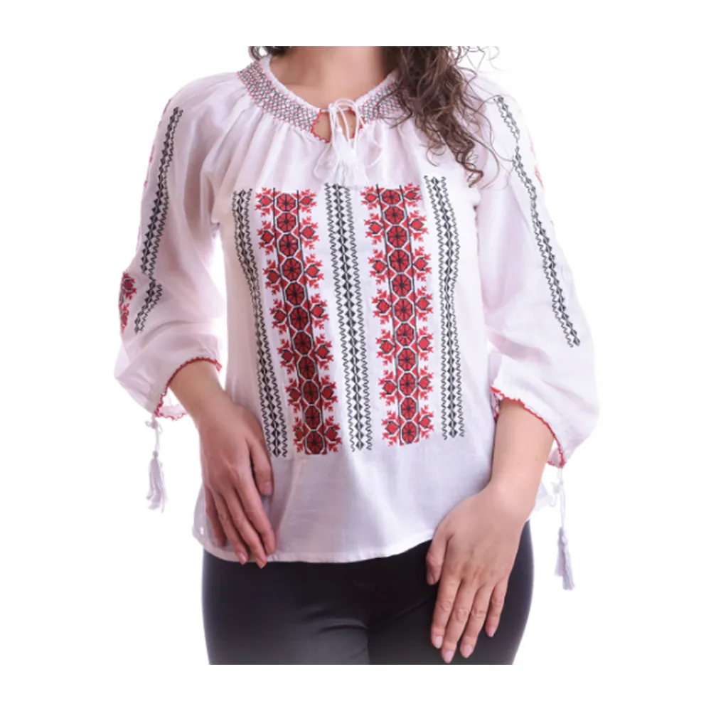 Ie Traditionala Alba cu Motiv Floral Rosu- IML14