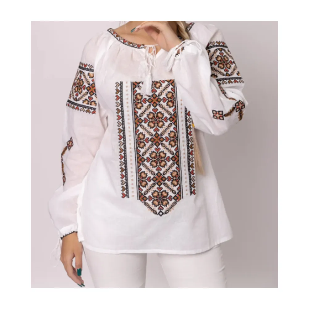 Ie Traditionala Alba cu Motiv Geometric Alb- IML15