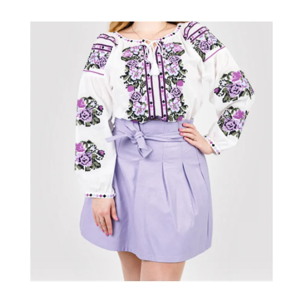 Ie Traditionala Alba cu Motiv Floral Mov- IML23