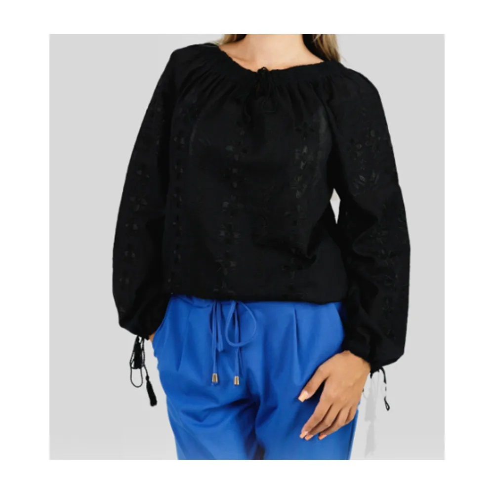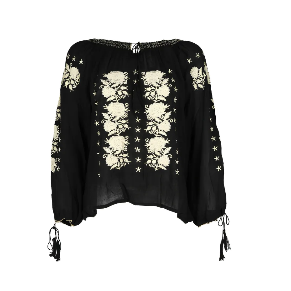 Ie Traditionala Neagra cu Motiv Floral Negru- IML27
