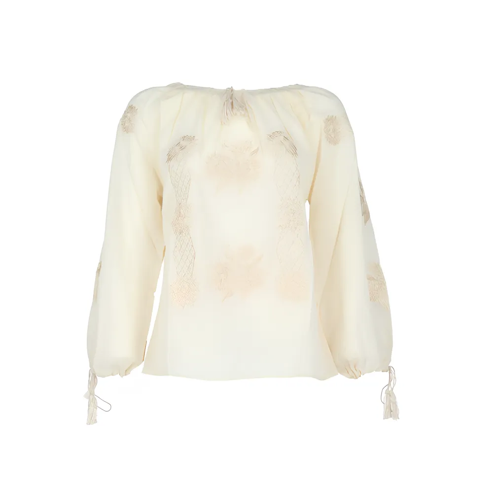 Ie Traditionala Crem cu Motiv Floral Auriu- IML25