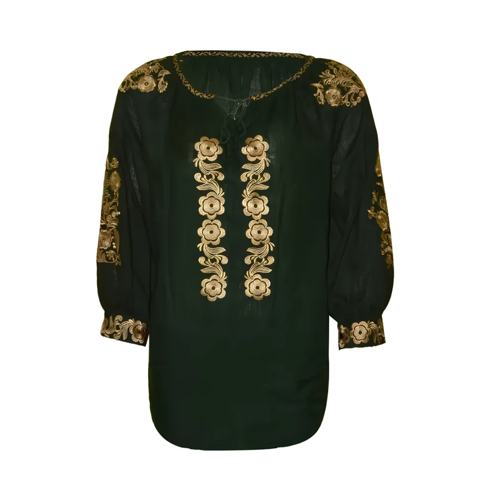 Bluza Tip Ie Verde cu Motiv Floral Auriu - BMG11