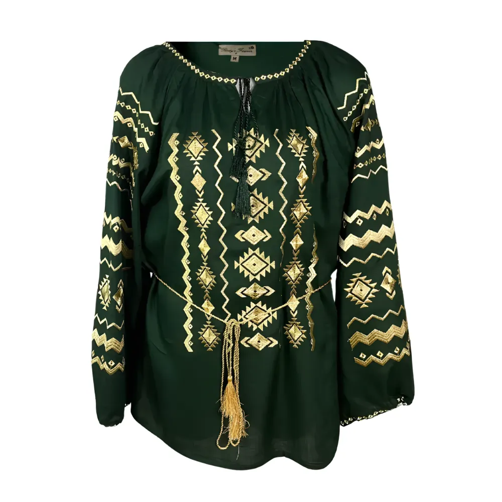 Bluza Tip Ie Verde cu Motiv Geometric Auriu - BMG17