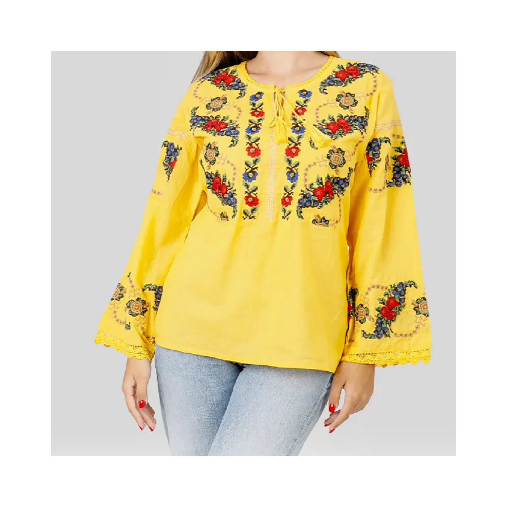 Bluza Tip Ie Galbena cu Motiv Floral Multicolor- BMG07