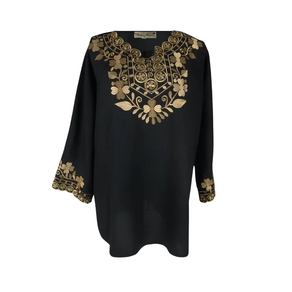 Bluza Tip Ie Neagra cu Motiv Floral Auriu - BMG08
