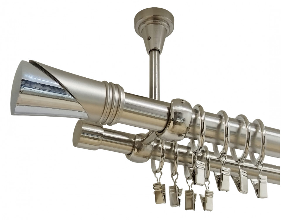 Galerie dubla navona , teava neteda si profil,grosime 25 si 19mm, crom mat