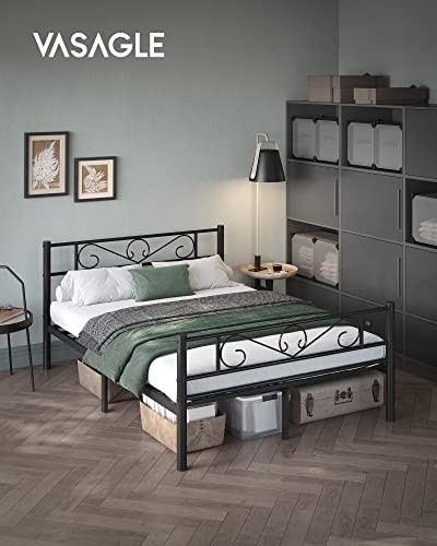 Cadru pat metalic, Vasagle, Negru, 198x141.8x87 cm
