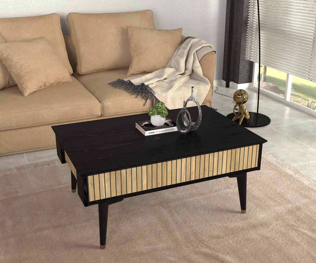 Măsuţă de cafea, Sabin Lumiere, UnicUtil, Lumiere Black, Lățime: 119 cm, Înălțime: 40 cm, Adâncime: 60 cm