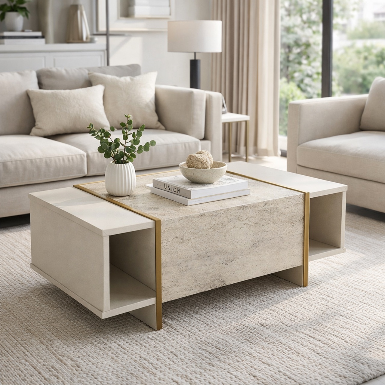 Masa de cafea, Stone Line, UnicUtil, 110 x 57 x 31 cm, Crem