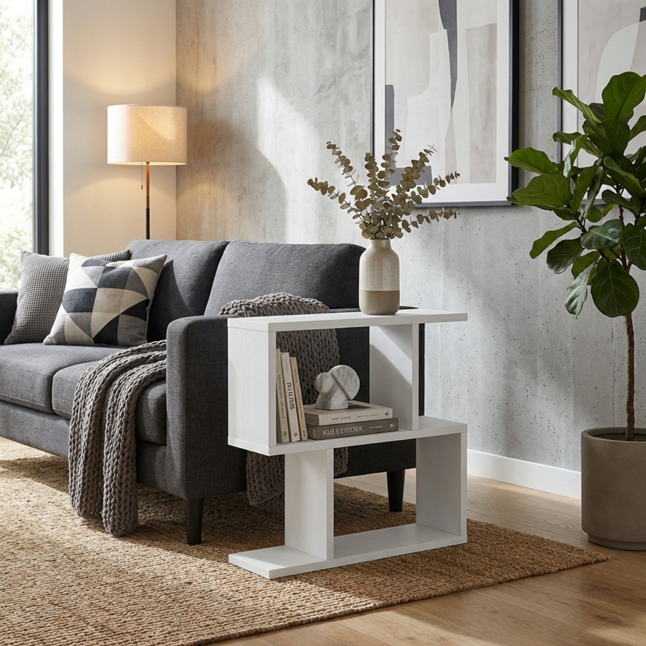 Masă de cafea UnicUtil cu rafturi pe trei niveluri in model S, Gri Antracit, Alb Dreapta 30 x 30 x 55cm