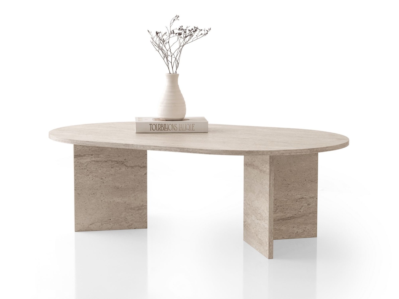 Măsuţă de cafea, Ovalis Travertine, UnicUtil, Travertin, Lățime: 130 cm, Înălțime: 40 cm, Adâncime: 65 cm, 838NRD1106