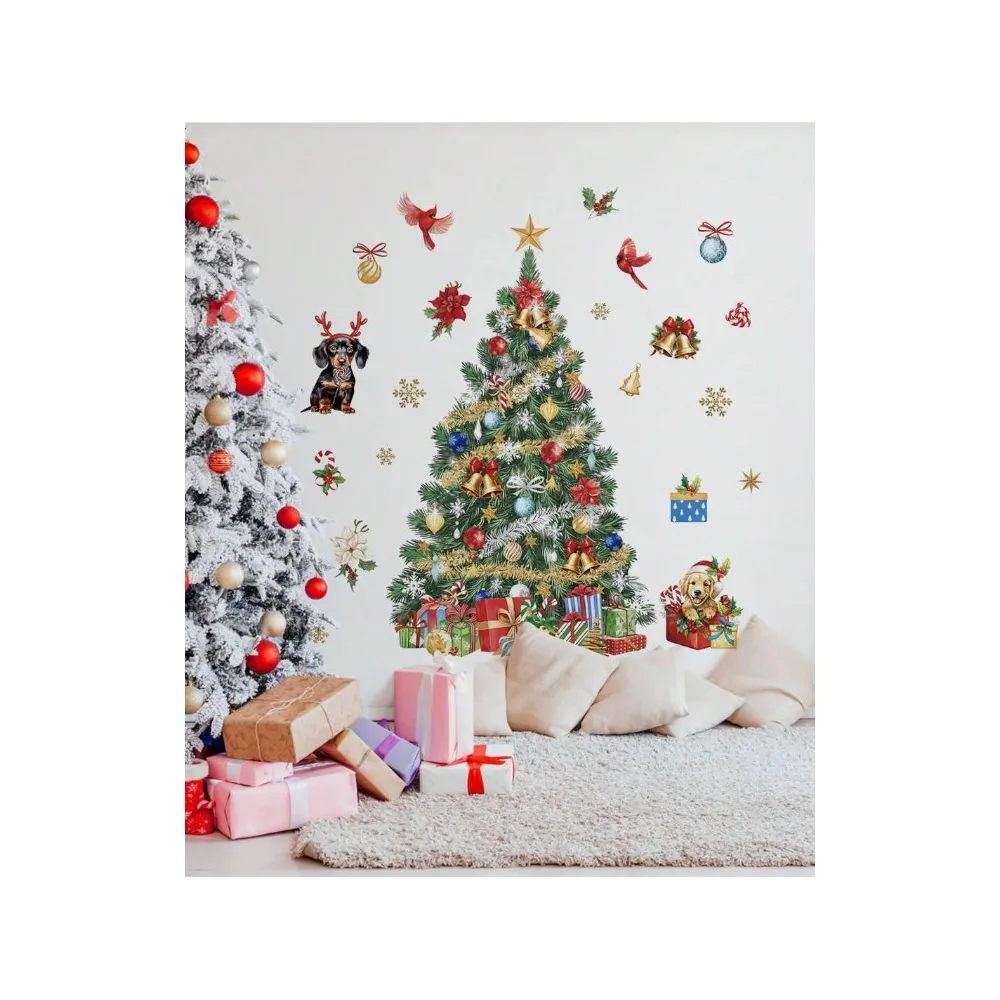 Sticker/Autocolant Craciun cu Brad impodobit si cadouri 71x71cm - 373969