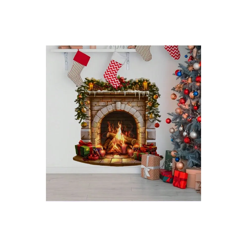 Sticker/Autocolant Craciun Semineu cu lemne 30x60cm - 654953