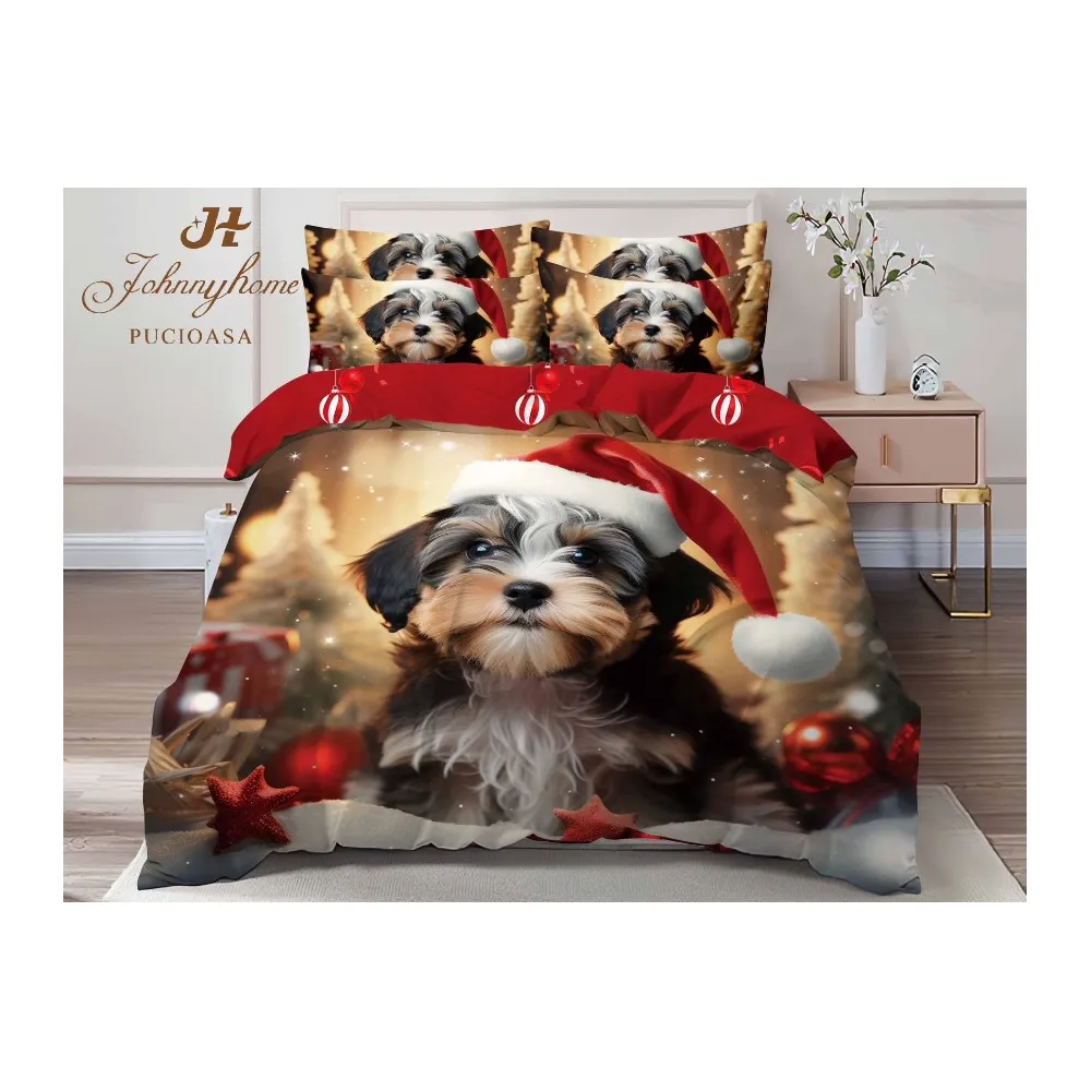 Lenjerie de pat de Craciun cu 6 Piese din finet, cu imprimare digitala 5D, Model JOJO8005