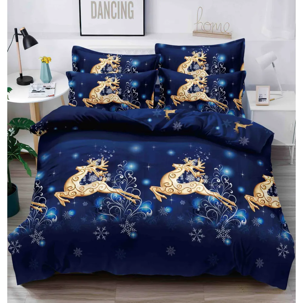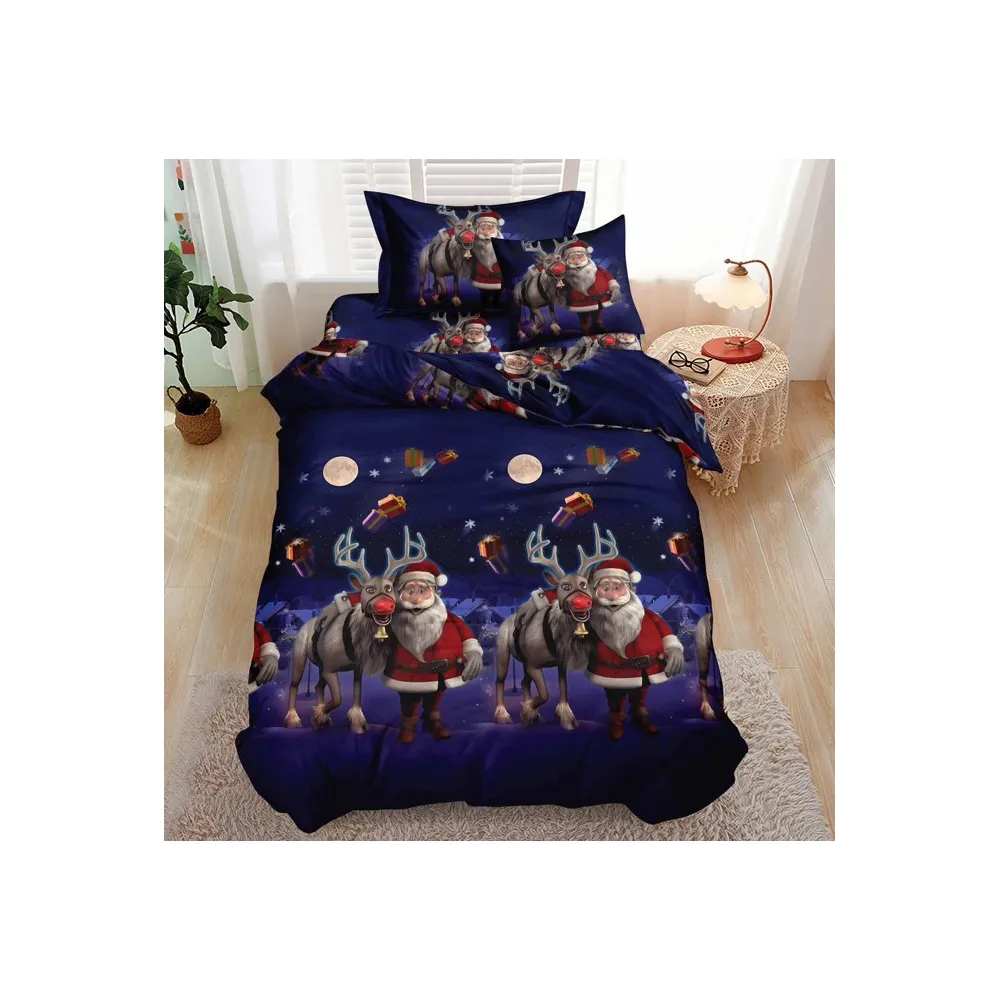 Lenjerie de Pat, Bumbac 100% Finet, 6 piese cu elastic MOS CRACIUN CU RENI SI SANIE - SIRQT-12