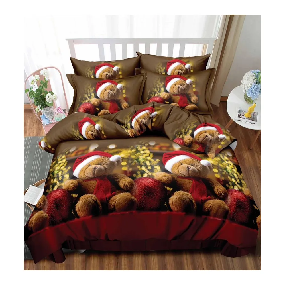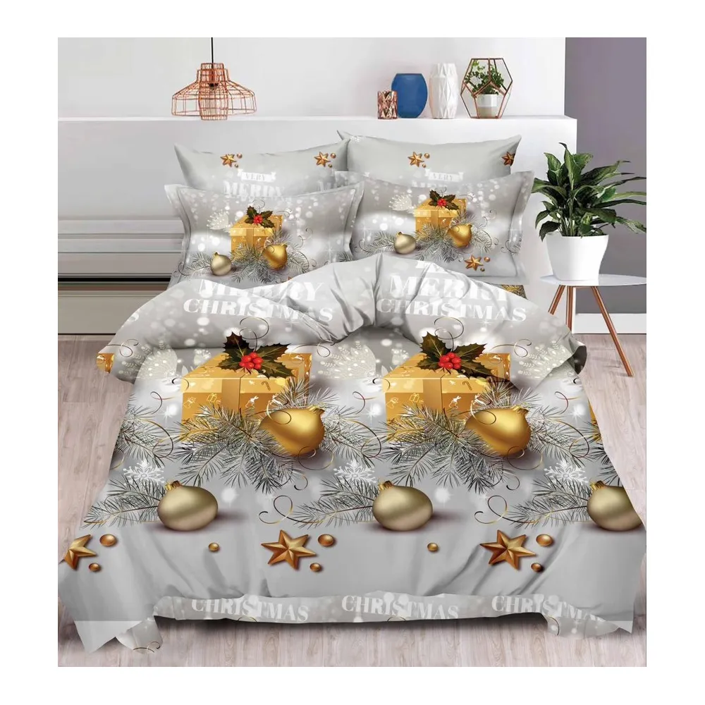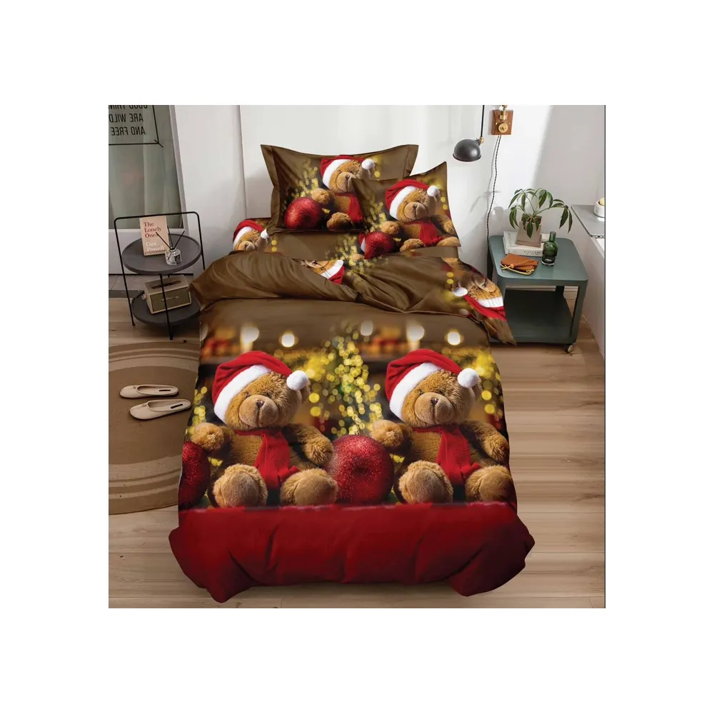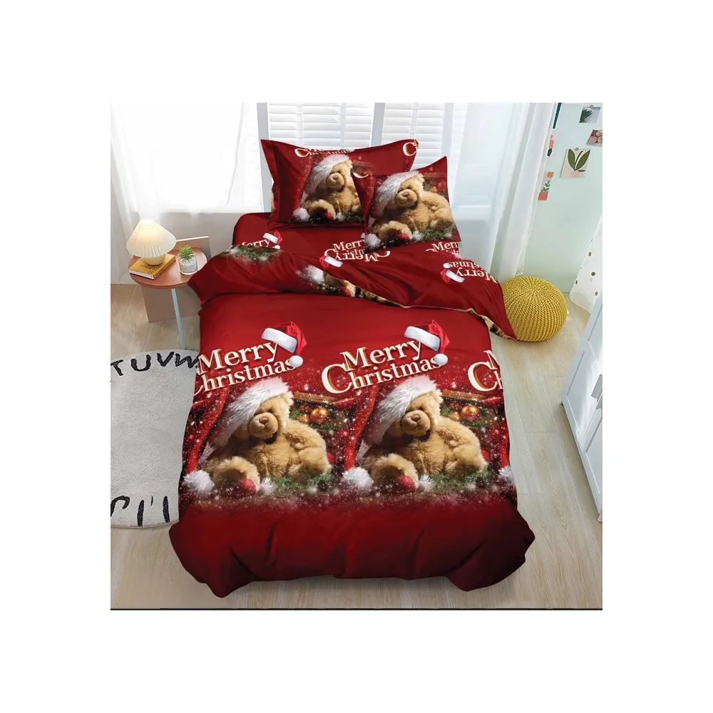 Lenjerie de Pat 1 PERSOANA, Bumbac 100% Finet, 4 PIESE - CRACIUN- SIPRQ1-02
