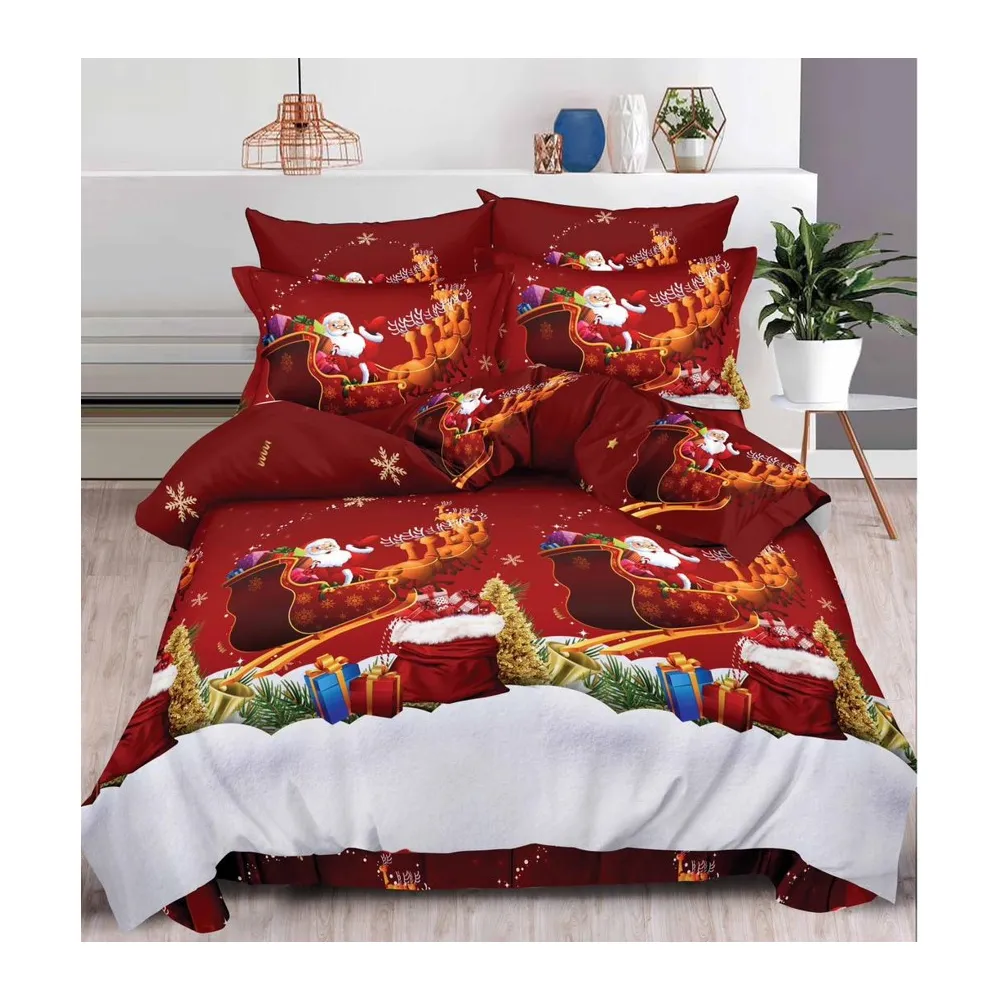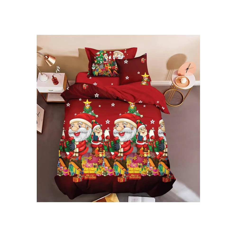 Lenjerie de Pat, Bumbac 100% Finet, 6 piese cu elastic Mos Craciun- SIRQT-01