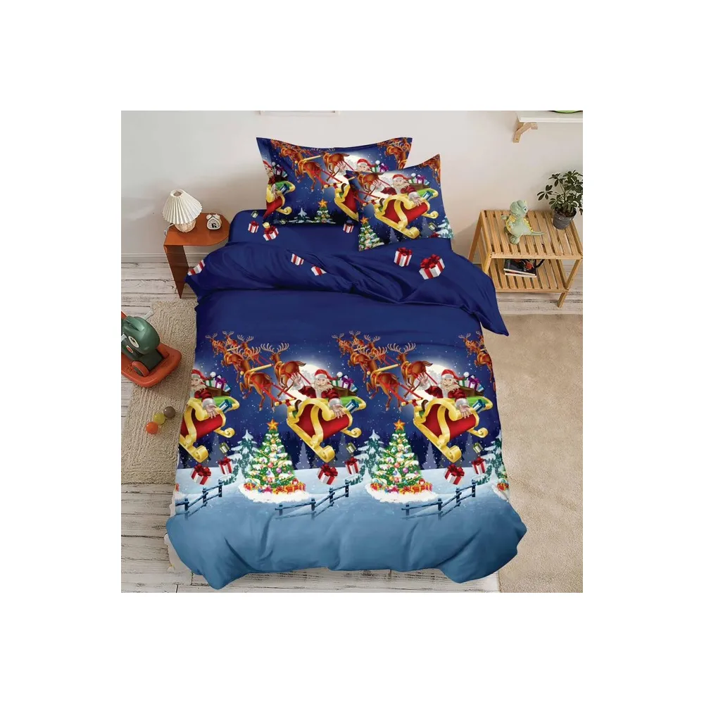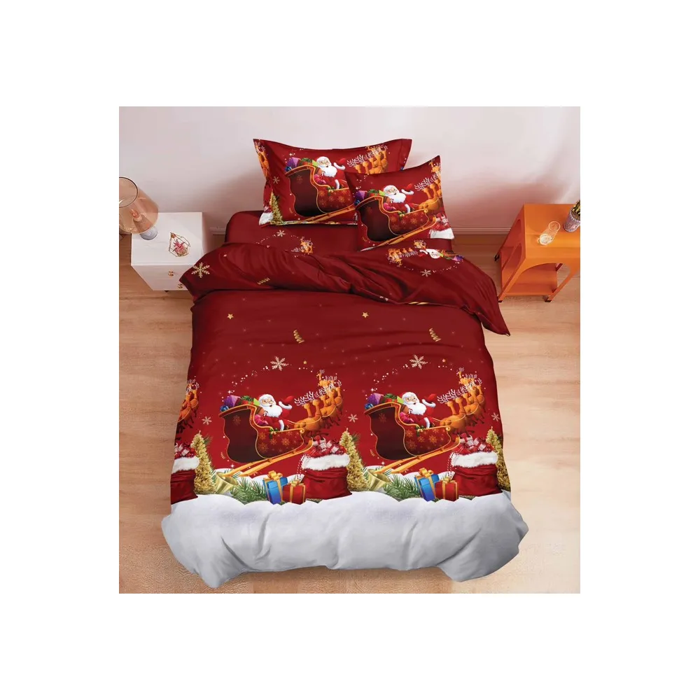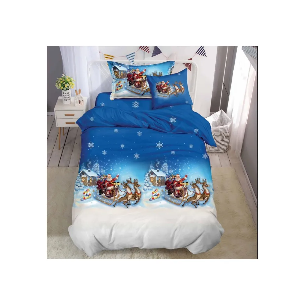 Lenjerie de Pat, Bumbac 100% Finet, 6 piese cu elastic MOS CRACIUN PE SANIE - SIRQT-04