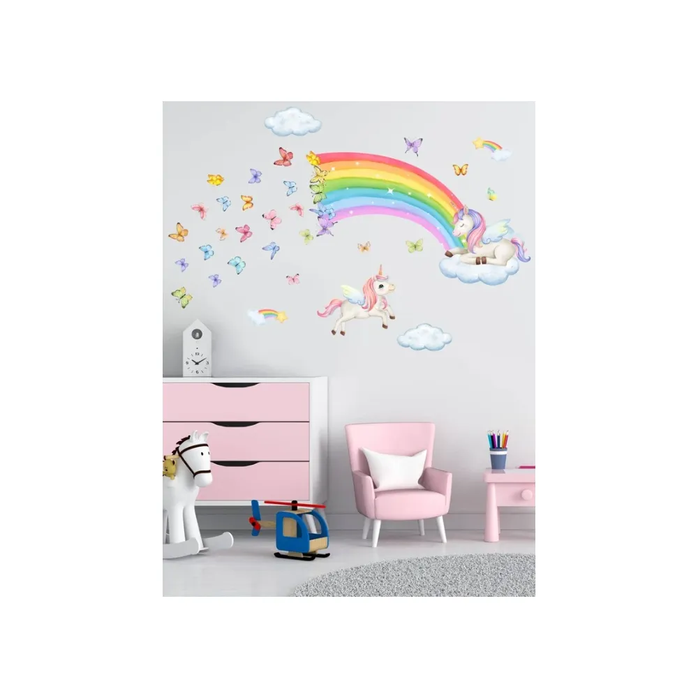 Sticker Perete Autocolant Unicorni si Curcubeu - 20629
