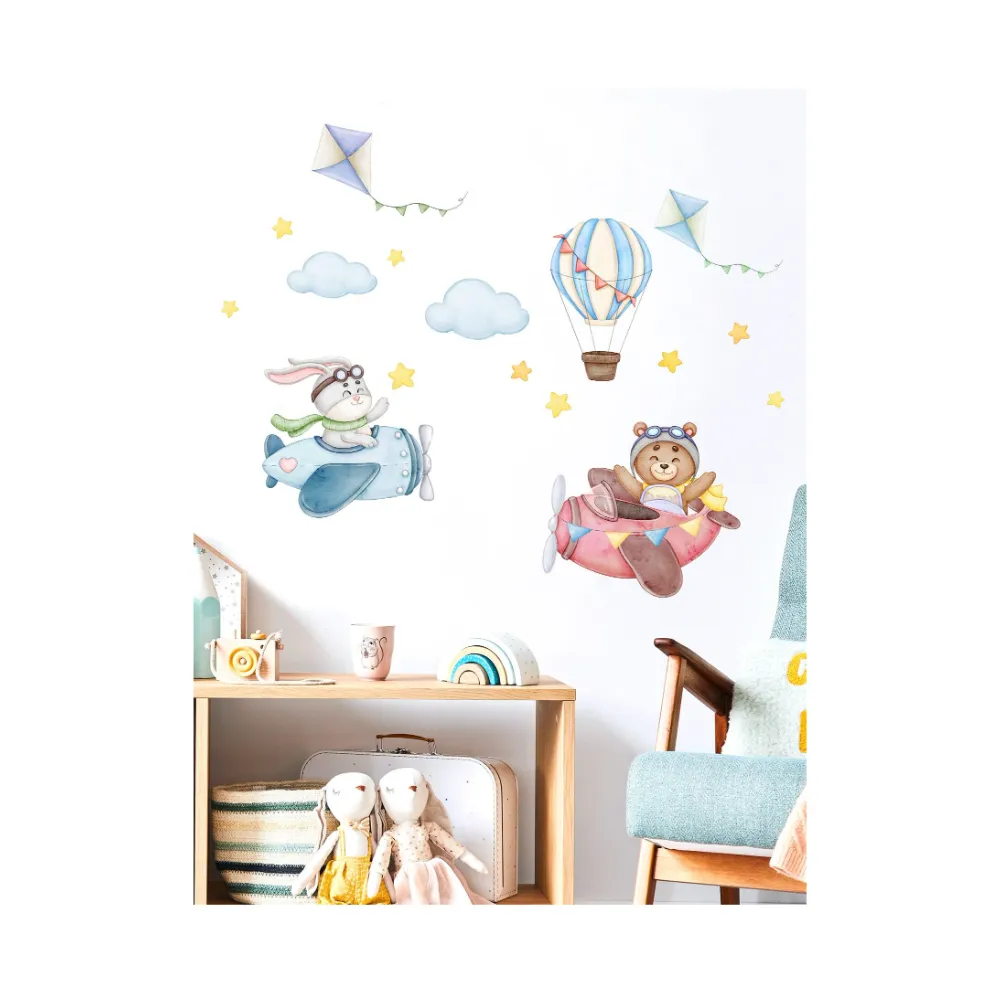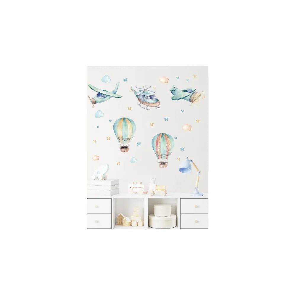 Sticker Perete Autocolant Avion si Balon Aer Cald - 73781
