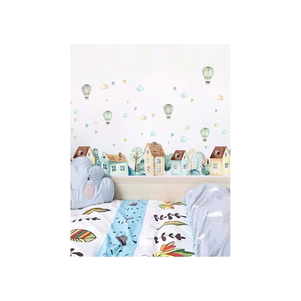 Sticker Perete Autocolant Balon cu Aer Cald si Case - 11275