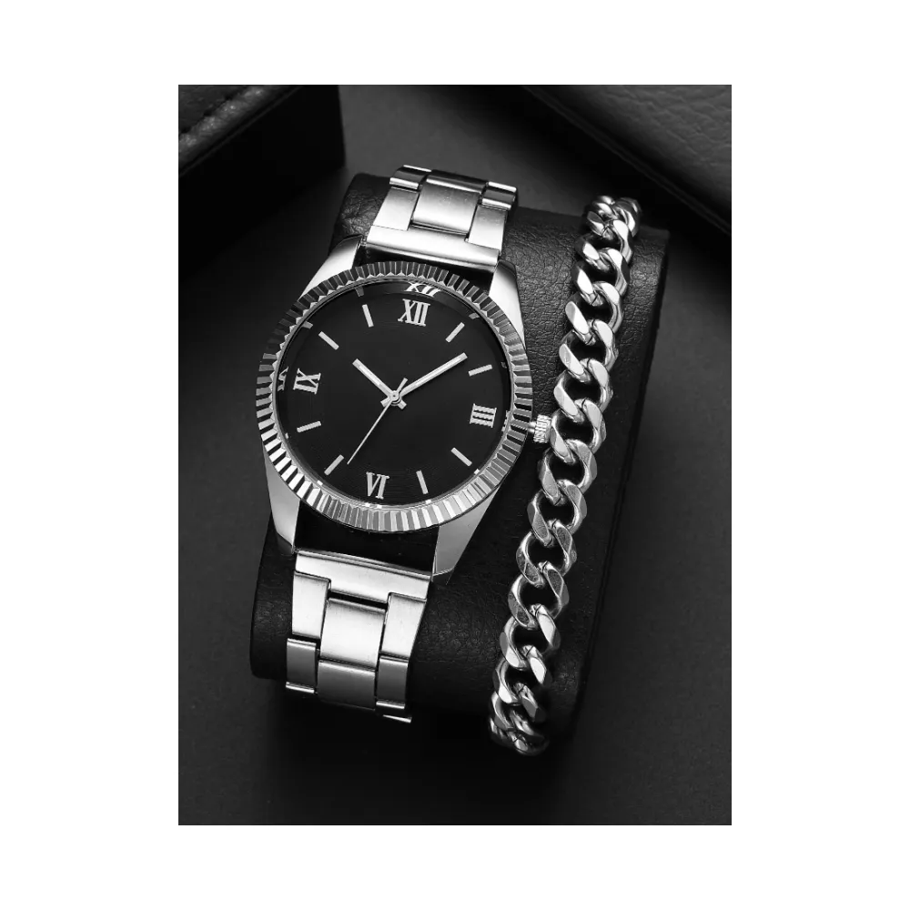 Set Pentru Barbati, Ceas si Bratara, Negru 83208