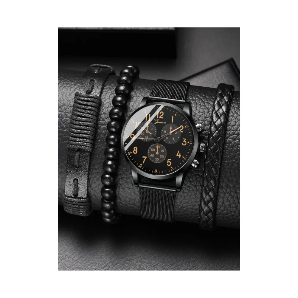 Set pentru Barbati Ceas si 3 Bratari, Negru