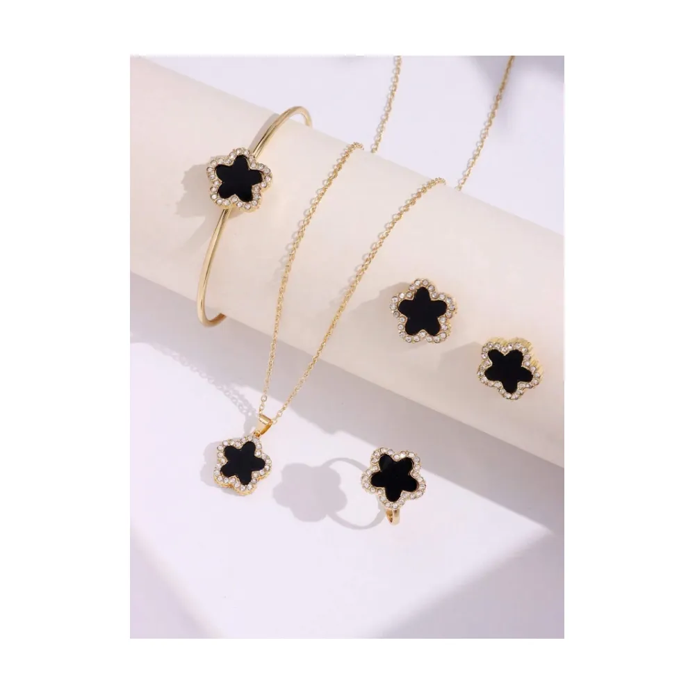 Set De Bijuterii Cu Floare, 5 Piese, Negru si Auriu - sj81165
