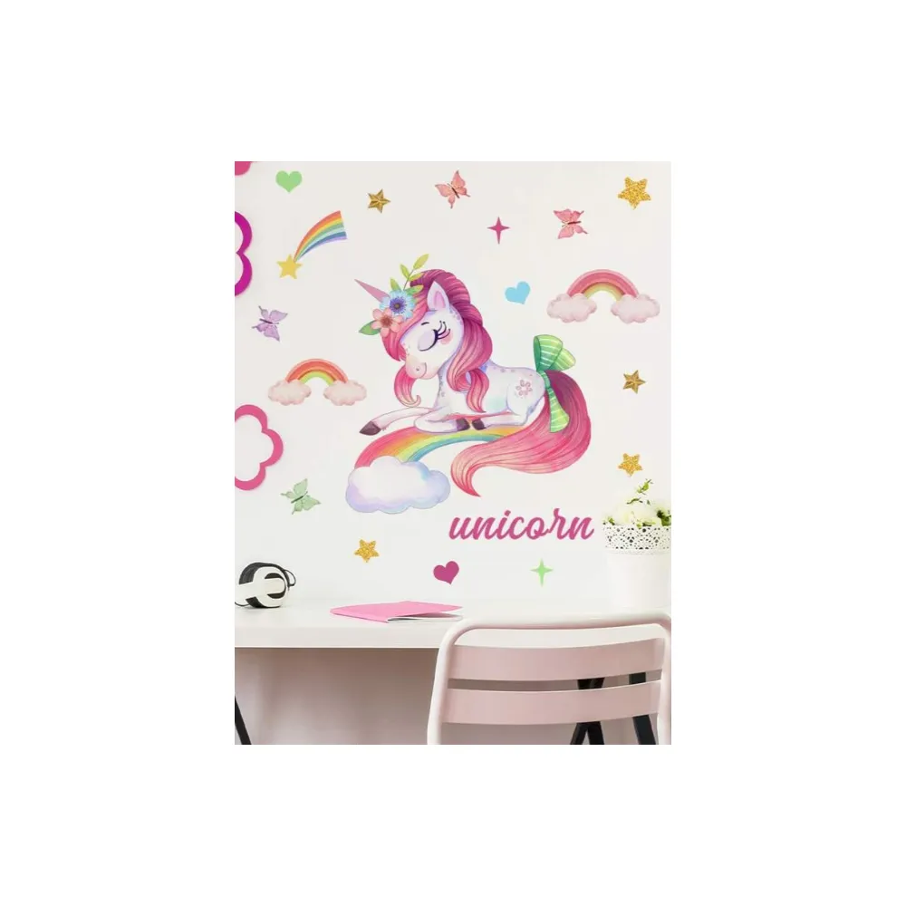 Sticker Perete Autocolant Curcubeu Si Unicorn 60x30cm- 55486