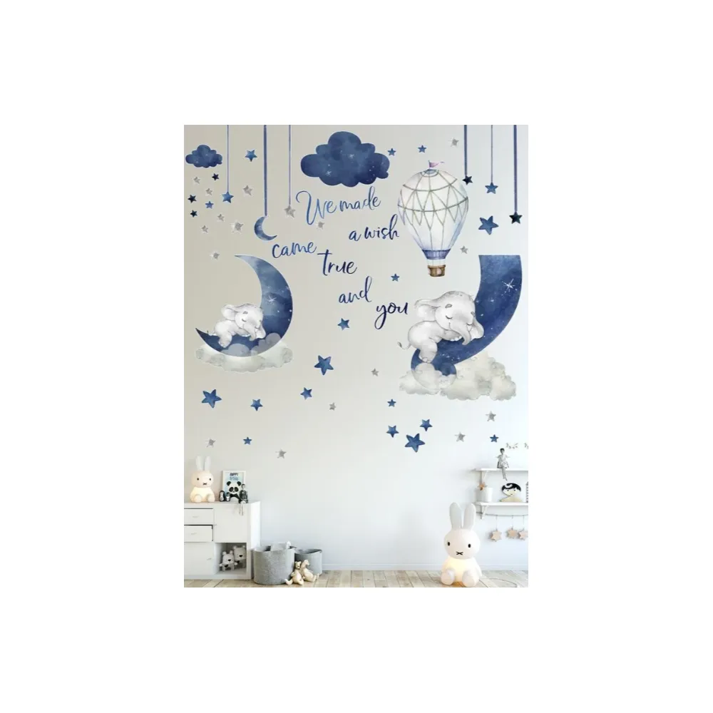 Sticker Perete Autocolant Elefanti Pe Luna 40x90cm -57633