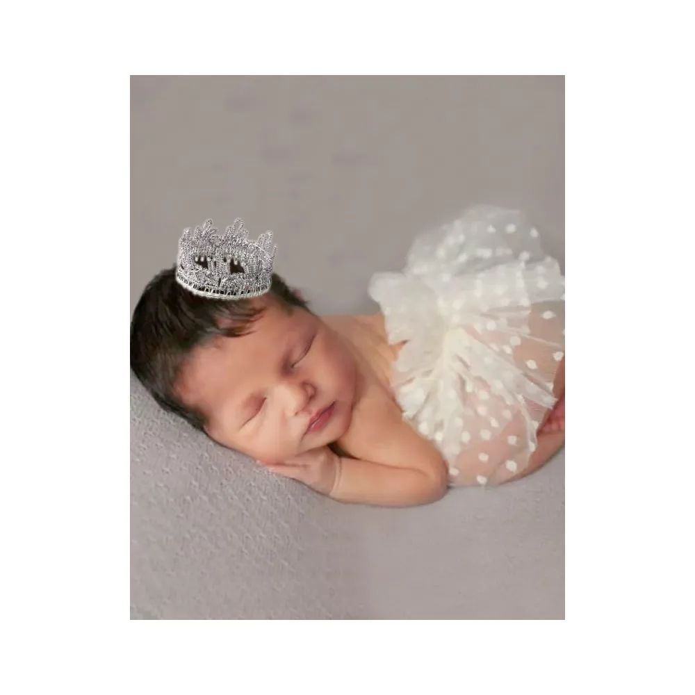 Set Pentru Sedinta Foto Nou Nascut Printesa -Fusta si Coronita- Alb