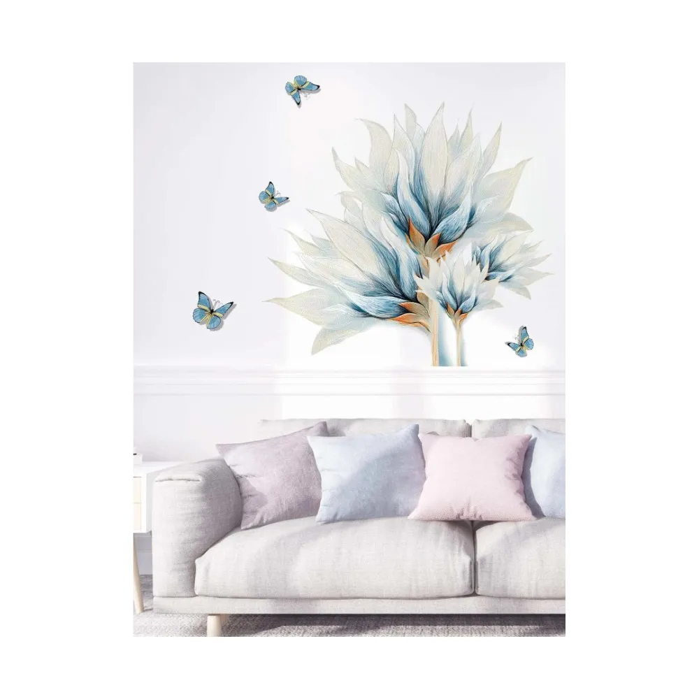 Sticker Perete Autocolant Floare Albastra si Fluturi